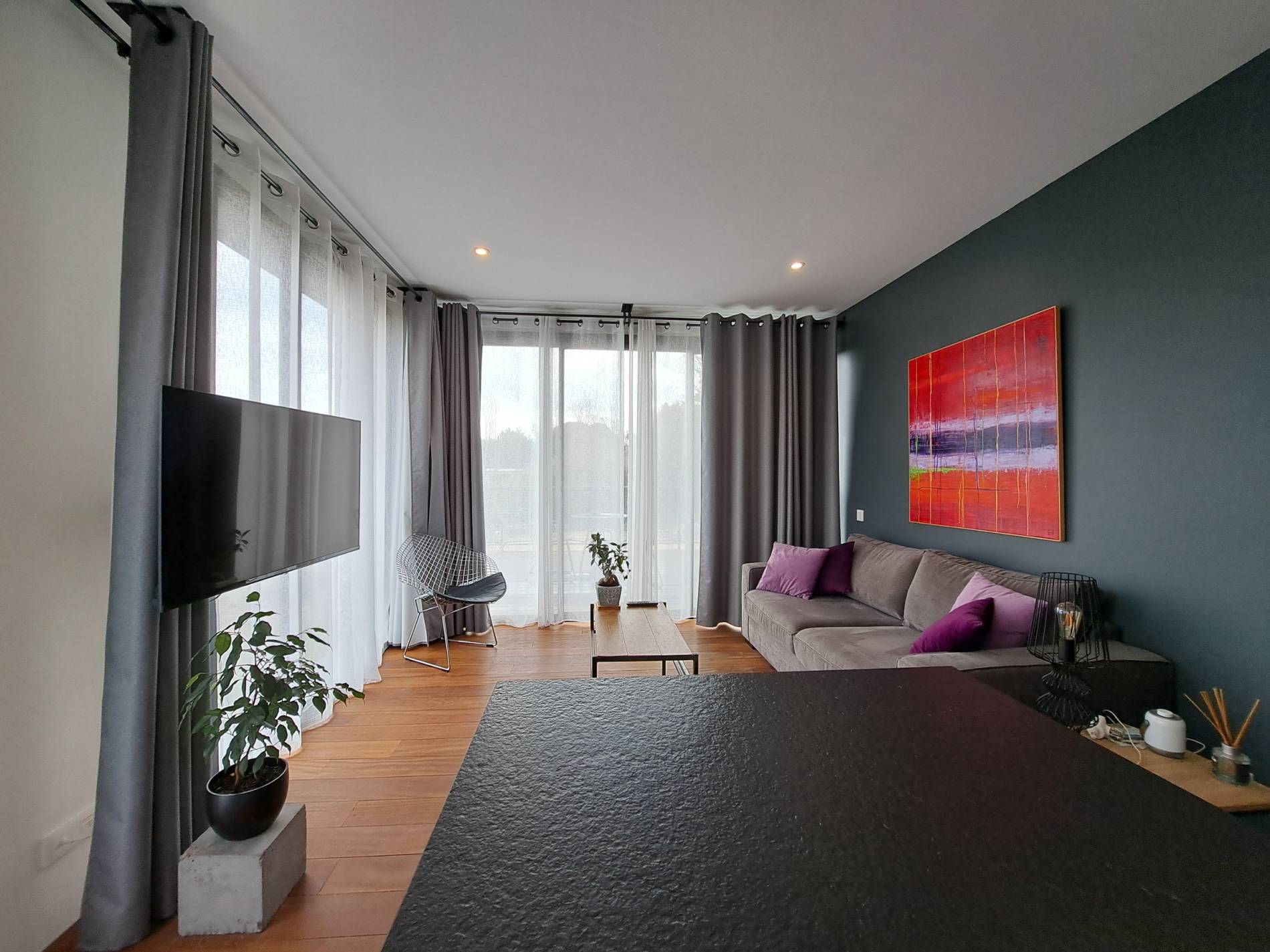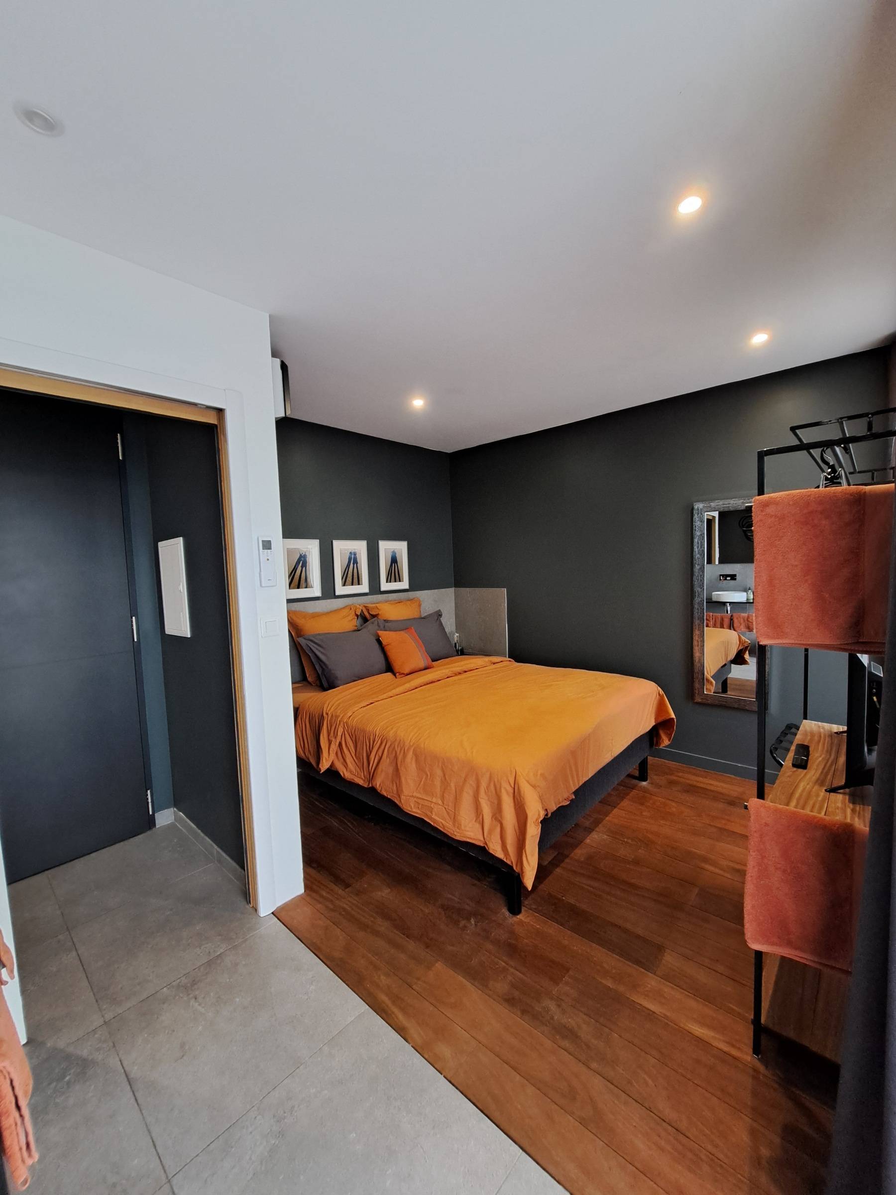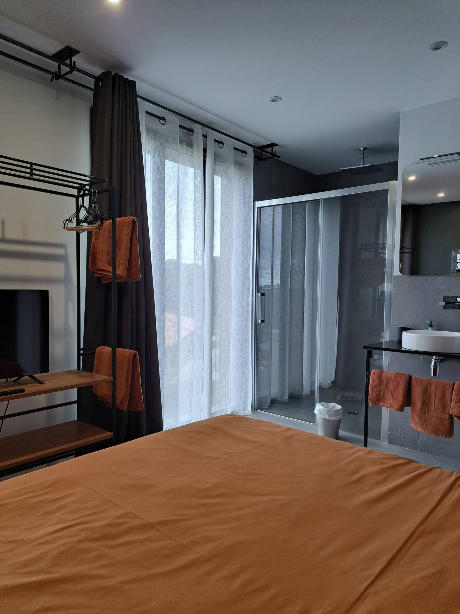 Appartement n°3 : 36m2, design, avec terrasse privative qui offre une vue reposante. Cuisine et mobilier de qualité. Entre autres, la cuisine inclus 2 plaques à induction et un micro-ondes/grille combiné. La chambre, avec un grand lit double (160x200) intègre la salle de bain avec une très grande douche à l'italienne.